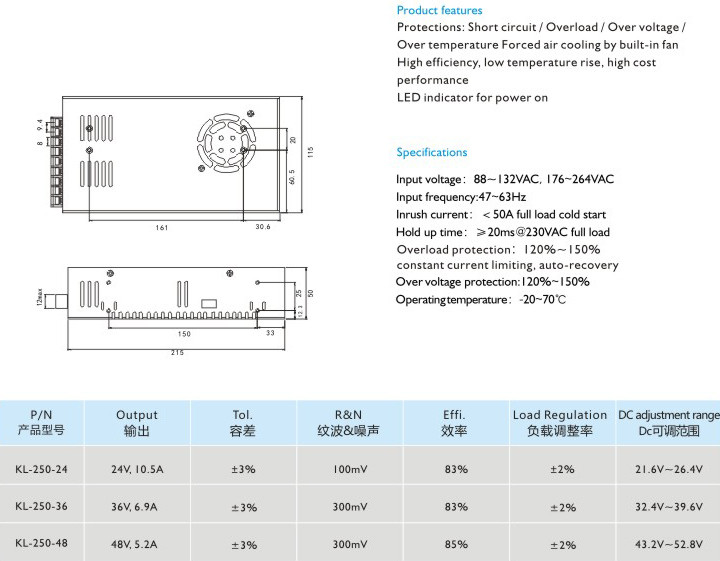 過電壓保護(hù)/過電流保護(hù)/過溫保護(hù)內(nèi)置風(fēng)扇冷卻
